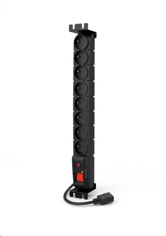 19" rozvodný panel ACAR 8x230V s IEC konektorom pre UPS, vypínač, indikátor napätia, prepäťová ochrana, kábel 5m