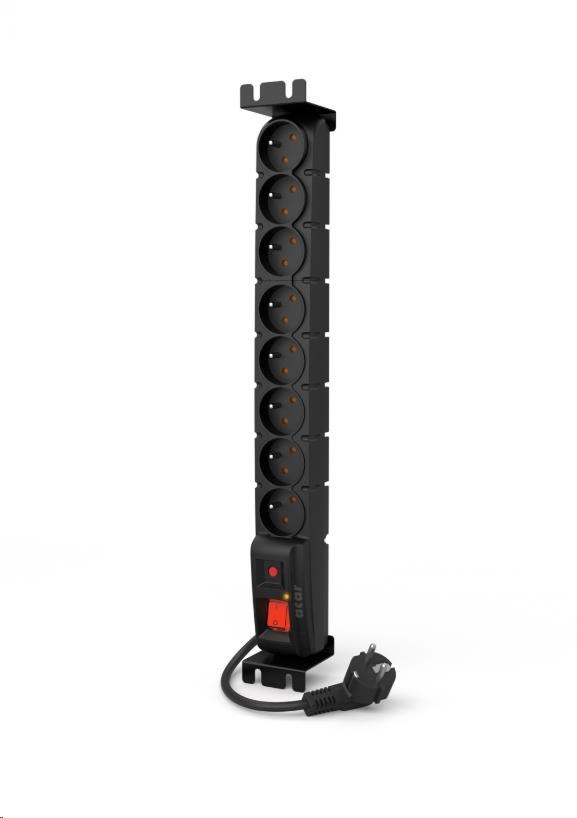 19" rozvodný panel ACAR 8x230V, vypínač, indikátor napätia, prepäťová ochrana, kábel 3m