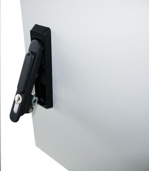 Vonkajší nástenný rozvádzač vyrobený z válcované ocele o hrúbke 1,5 mm. Trojvrstvová povrchová úprava. Ukončenie: dvere - plné, otvárateľné o 110°, 3-bodový zámok, zameniteľný smer otvárania, tesnenie z penového polyuretánu zádny kryt - plný bočný kryt - plný horný kryt - plný