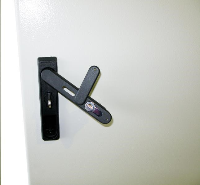 Vonkajší nástenný rozvádzač vyrobený z válcovanej ocele o hrúbke 1,5 mm. Trojvrstvá povrchová úprava. Vedenie: dvere - plné, otvárateľné o 110°, 3-bodový zámok, zameniteľný smer otvárania, tesnenie z penového polyuretánu zadný kryt - plný bočný kryt - plný horný kryt - plný