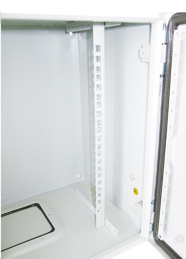 Vonkajší nástenný rozvádzač vyrobený z válcované ocele s hrúbkou 1,5 mm. Trojvrstvová povrchová úprava. Vykonanie: dvere - plné, otvárateľné o 110°, zameniteľný smer otvárania, tesnenie z penového polyuretánu zadný kryt - plný bočný kryt - plný horný kryt - plný