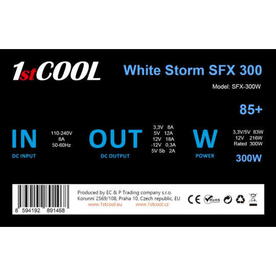 1stCOOL Zdroj White Storm SFX 300 85+, 300W, SFX, černá