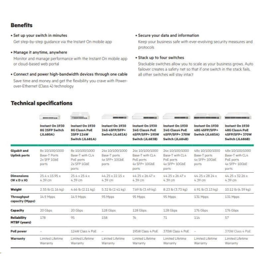 | Aruba Instant On 1930 48G Class4 PoE 4SFP/SFP+ 370W Switch (JL686B) | ||