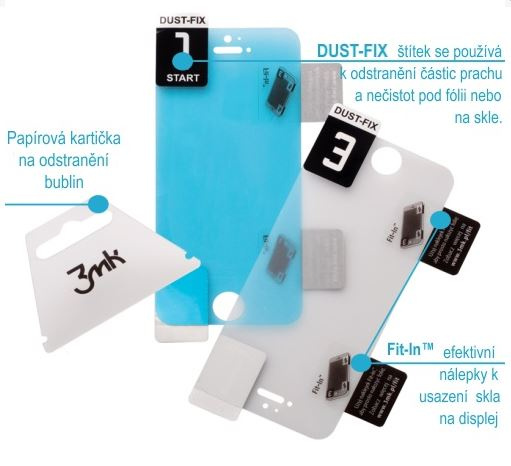 - Sada obsahuje: FlexibleGlass, kartičku na rozotretie bublín, polohovacie samolepky Fit-In™ a samolepky Dust-Fix™, čistiaci a suchý handriček.