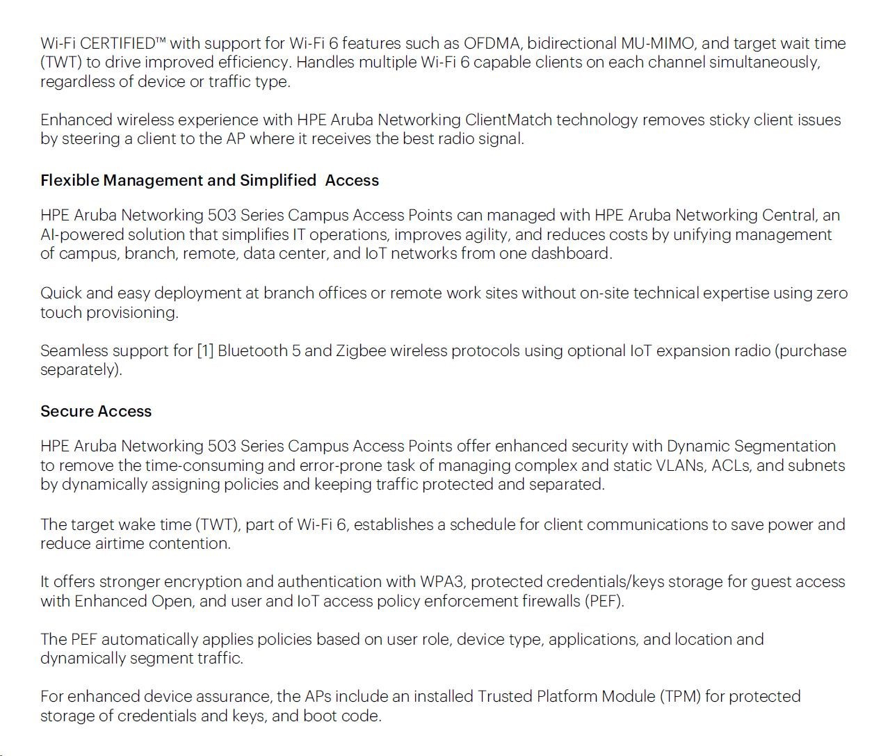 5 x HPE Aruba Networking AP-503-RW Dual Radio 2x2:2 802.11ax Wi-Fi 6 Campus Access Point ( 5x R8M98A )