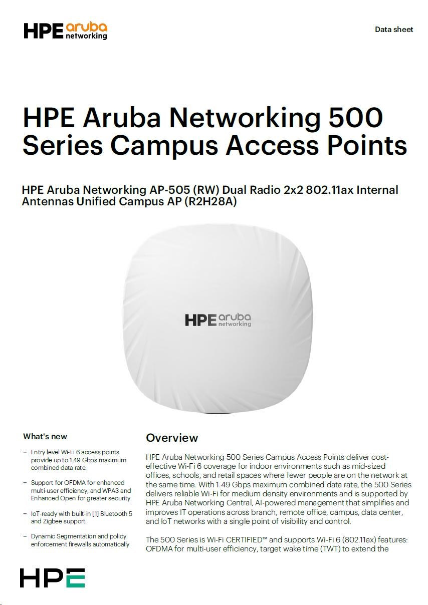 Odkaz na web výrobcu: https://www.arubanetworks.com/assets/ds/DS_AP500Series.pdf