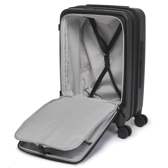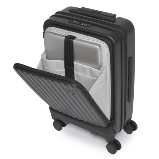 Acer Barcelona kufor na cestovanie 20", čierny, pevných rozmerov, materiál: 100% recyklovaný PET, TSA combi zámok, predné otváranie, vrecko na notebook / tablet, 4 dvojité otočné kolieska, 53,5 x 20,5 x 35,5 cm, 3,1 kg