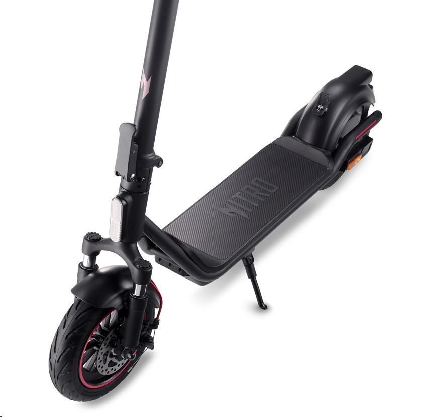 Acer Nitro ES Series 4 Select je vybavená 10“ bezdušovými pneumatikami, ktoré zabezpečujú vynikajúcu stabilitu a pohodlie a zabezpečujú spoľahlivú jazdu. Jeho predná odpružená vidlica funguje ako tlmič nárazov, ktorý znižuje nárazy od nerovností a terénnych nerovností pre plynulejšiu jazdu.