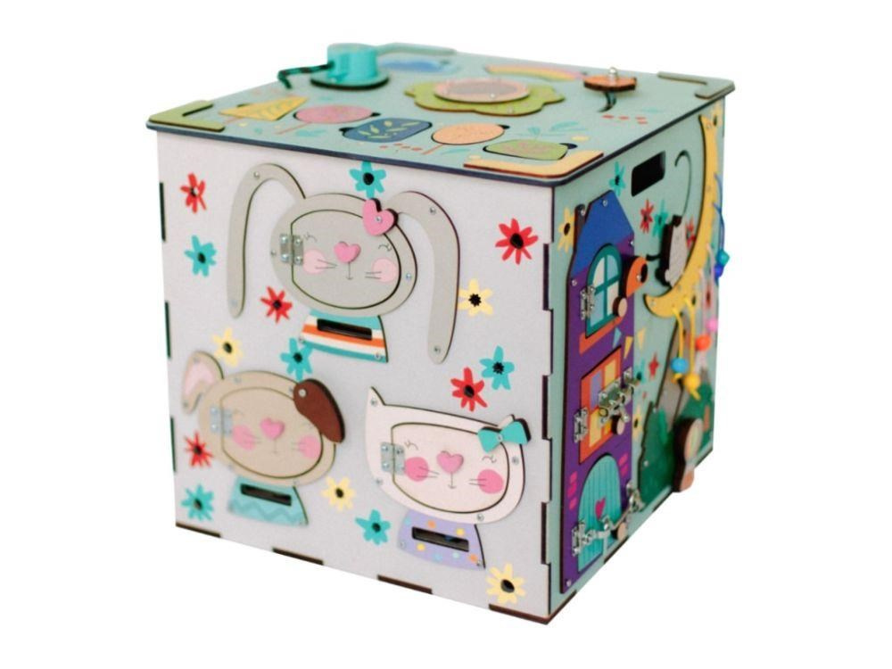 Originálna activity board kocka s LED osvetlením XXL je montessori hračka, ktorá deťom prinesie veľa zábavy, zdokonalí ich schopnosti a naučí ich novým zručnostiam. Každá zo strán modrej activity board je originálna a ponúka nespočet možností na hru, poznávanie a skúmanie. Nechýbajú ozubené kolieska, rôzne spôsoby zapínania a zatvárania, šnúrka, bludisko, korálky, vkladacie puzzle, rôzne prekvapenia i slnečný vypínač, ktorý activity board kocku rozžiari.