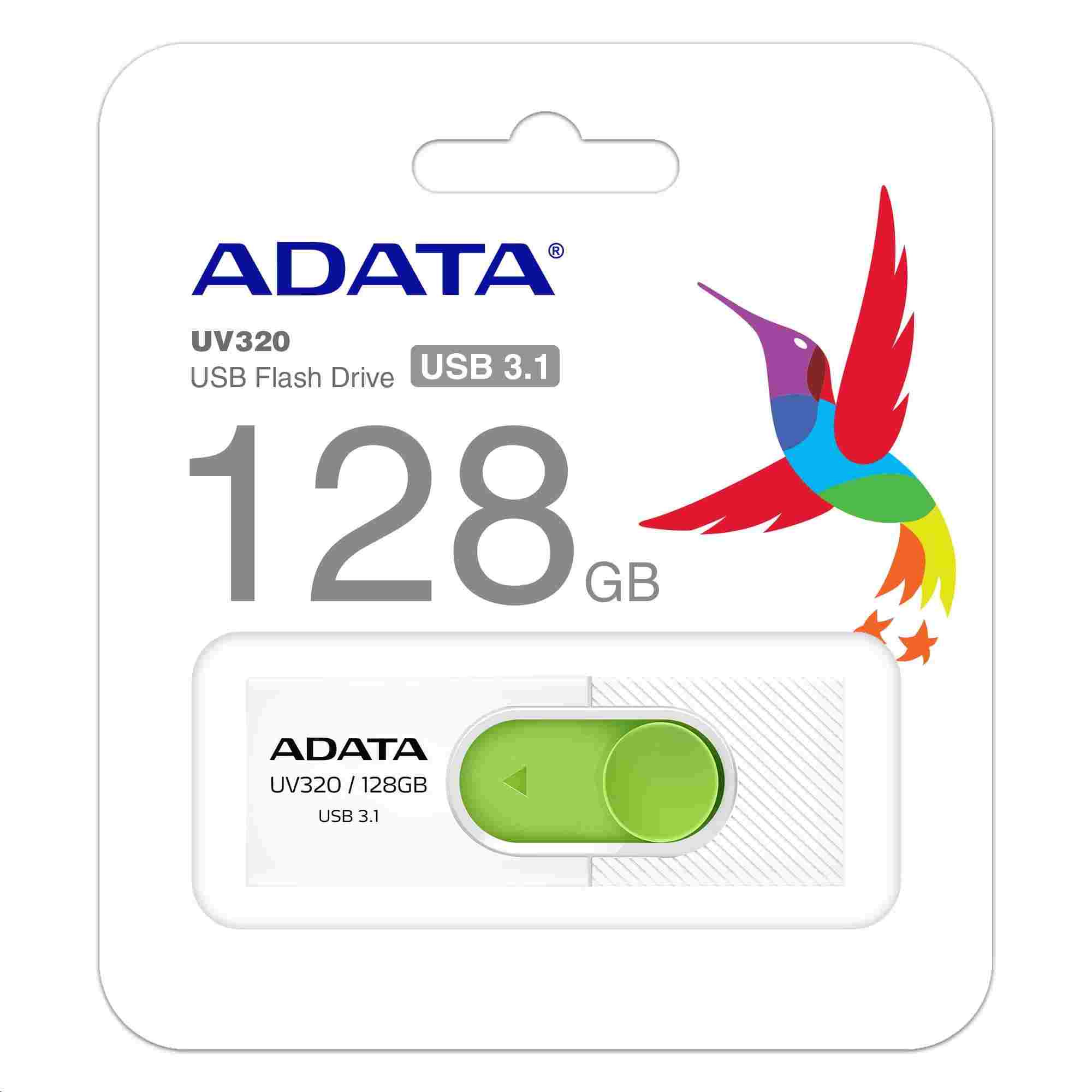 ADATA Flash disk 128 GB UV320, USB 3.1 Dash Drive, biela/zelená