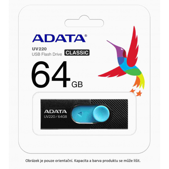 ADATA Flash disk 32GB UV220, USB 2.0 Dash Drive, čierna/modrá
