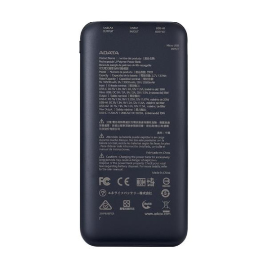 | Výstup | USB-C: DC 5V / 3A, 9V / 2.22A, 12V / 1.67A, 20W Max USB-A: DC 5V / 3A, 9V / 2A, 12V / 1.5A, 18W Max USB-A: DC 5V / 3A, 9V / 2A, 12V / 1.5A, 18W Max |
