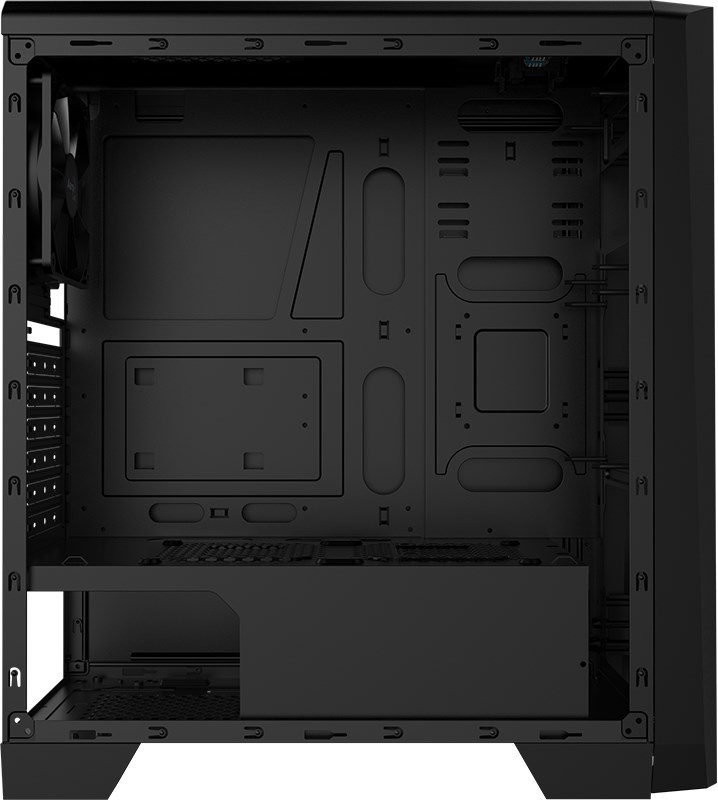 Skriňa formátu Middle Tower so štýlovým dizajnom. RGB LED na prednom paneli s 13 režimami osvetlenia. Dodáva sa s akrylovým bočným panelom a podporuje kapalinové chladenie.