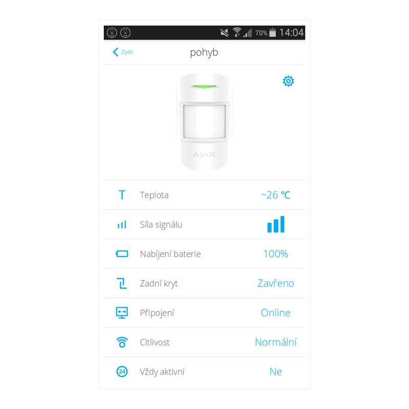 Detekčné zóny a kvalitu pripojenia je možné na diaľku otestovať prostredníctvom mobilnej aplikácie.