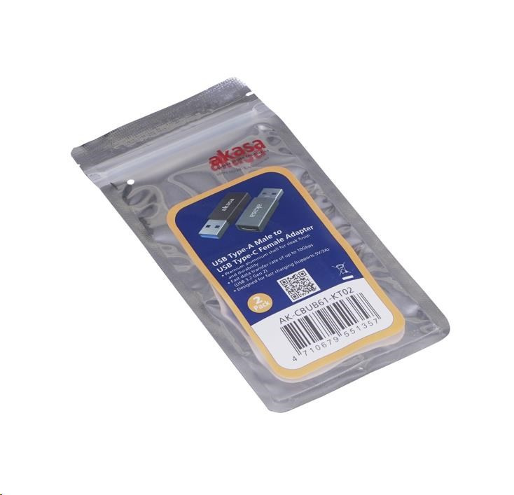 Adaptér AKASA USB3.1 Gen2 Type-C na Type-A (F/M), 2 ks v balení