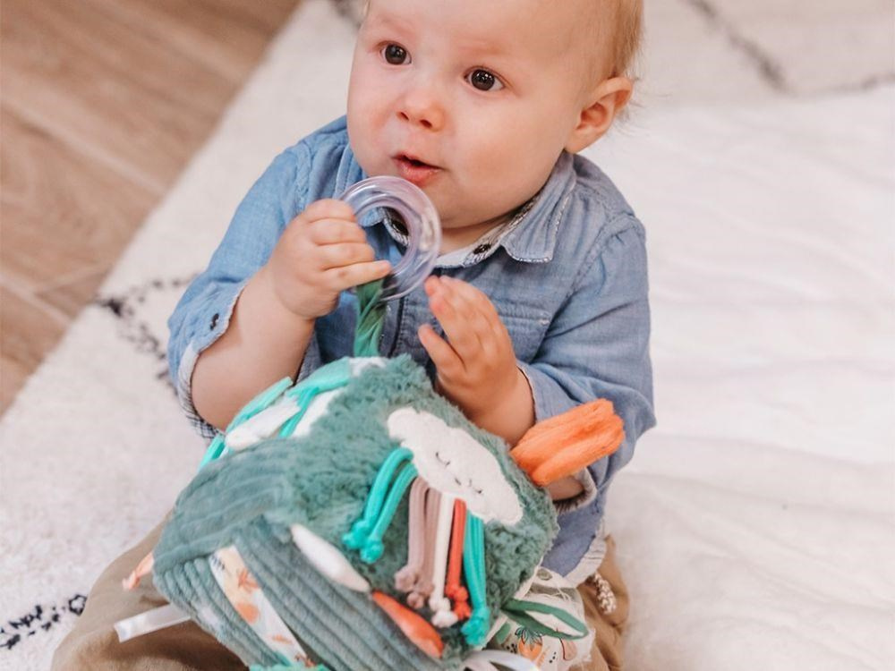 Hoci je lenochod zvieratko, ktoré sa pomaly pohybuje a väčšinu dňa prespí, tak táto activity kostka lenochod určite vaše dieťatko nenechá len tak oddychovať. Originálne prvky v podobe chrastítka, zrkadla, suchých zipsov, šuštiacich hodín, tvarov na suchý zips, s provázkami, s rôznymi materiálmi, s kapsičkou a so schovaným lenochodom motivujú dieťa k pohybu, k preskúmavaniu, objavovaniu, mačkaniu, ochutnávanie. Pri hre so zábavnými prvkami na activity kostke stimuluje deti svoje zmysly, zdokonaľujú jemnu motoriku aj koordináciu očí a rúk. Prezrite si túto úžasne hebkú kostku s aktivitami, ktorá je skvelým darčekom pre deti už od narodenia.