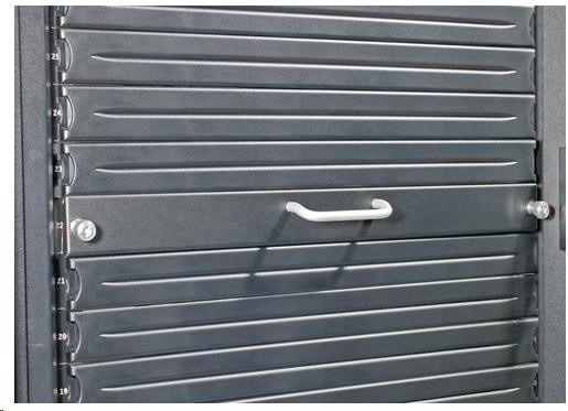 Modulárny zaslepovací panel na reguláciu prúdenia vzduchu 1 U, ktorého inštalácia nevyžaduje žiadne náradie, zabraňuje spätnému prúdeniu vzduchu tým, že zabraňuje nevyužitému priestoru v stojane (číslo 200)...