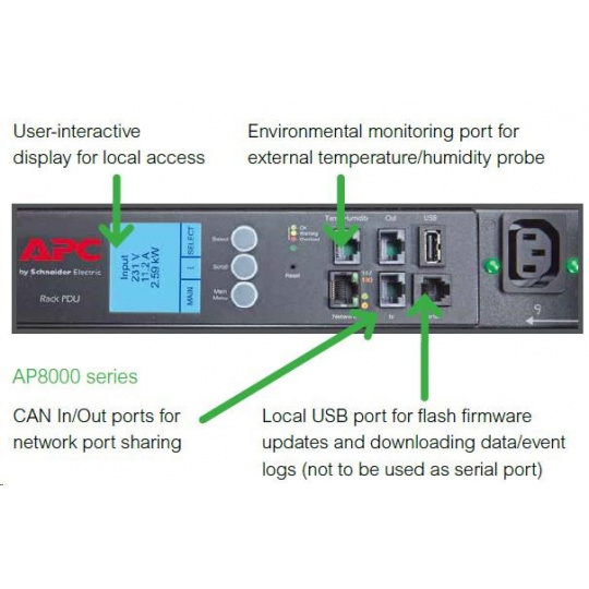 APC Rack PDU 2G, meranie podľa výstupu, ZeroU, 16A, 100-240V, (21)C13 a (3)C19, IEC-320 C20