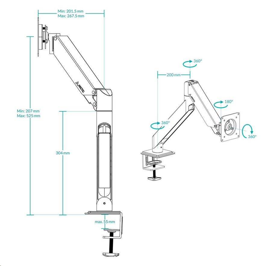 - JEDNODUCHÁ A RÝCHLA MONTÁŽ - Vďaka stolovej svorke možno rameno monitora voľne a ľahko umiestniť na okraj stola. Rameno je kompletne zmontované a jednoducho sa nasadí na tyč. Montáž alebo neskoršie premiestnenie je preto hračka a dá sa vykonať rýchlo.