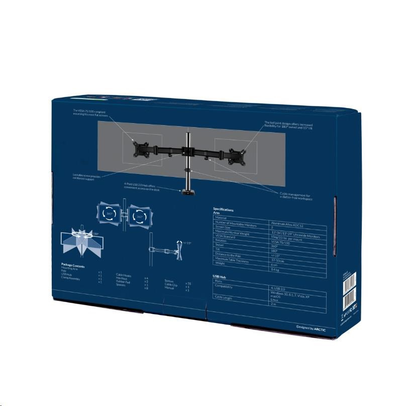 Stolný držiak ARCTIC Z2 (Gen3) pre 2x LCD do 34", nosnosť 2x15 kg, 4x USB HUB, čierny