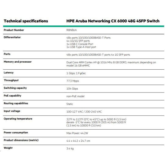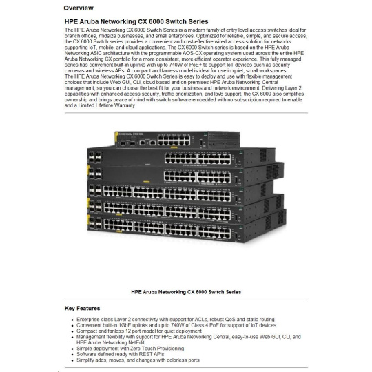 HPE Aruba Networking CX 6000 48G 4SFP Switch R8N86AR RENEW