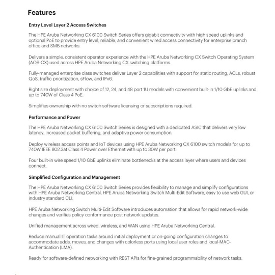 Aruba 6100 12G Class4 PoE 2G/2SFP+ 139W Switch JL679A RENEW.
