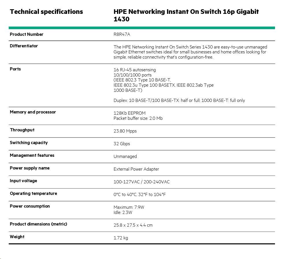 HPE Networking Instant On Switch 16p Gigabit 1430 (R8R47A)