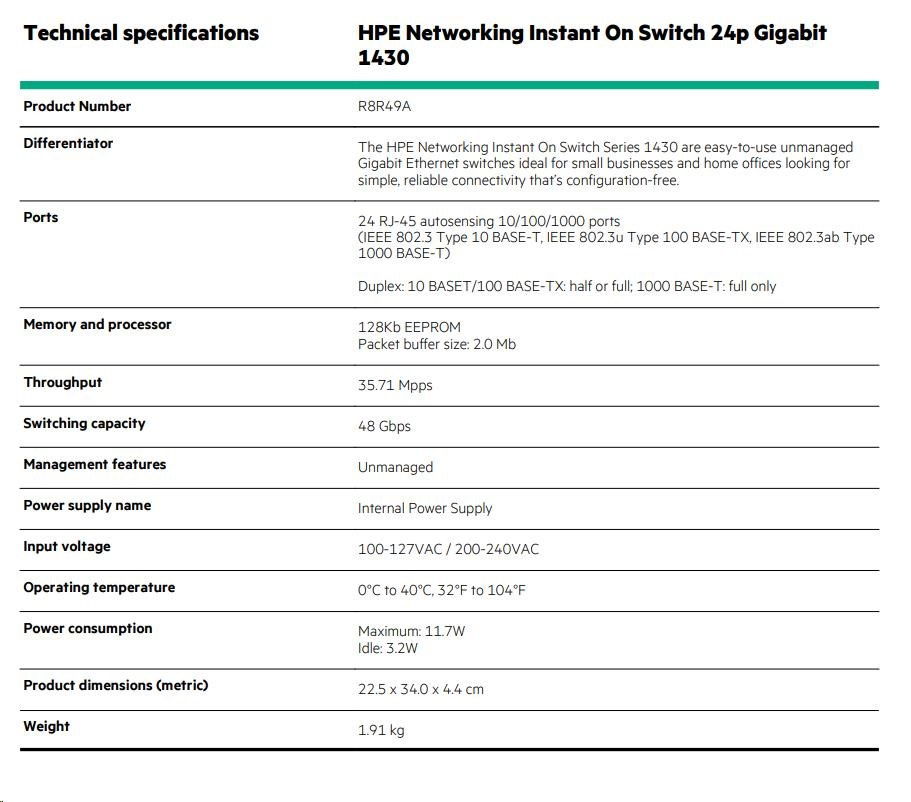 | Aruba Instant On 1430 24G Switch (R8R49A) | ||||
