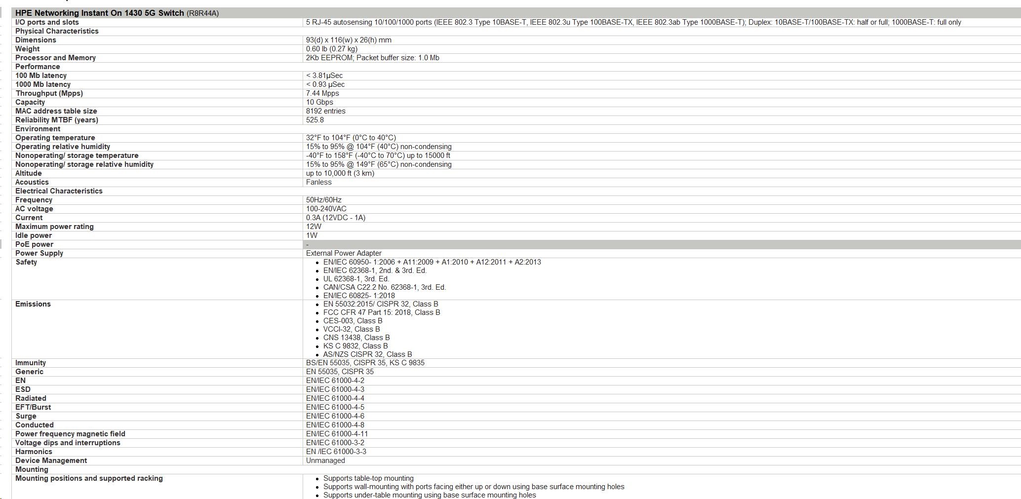 HPE Networking Instant On Switch 5p Gigabit 1430 R8R44A