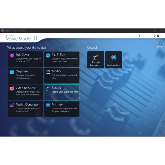 Ashampoo Music Studio je švajčiarsky armádny nôž pre vašu hudbu. Ponúka komplexnú sadu nástrojov na jednoduchú úpravu, produkciu, strihanie, mixovanie a organizovanie hudobných a zvukových súborov.