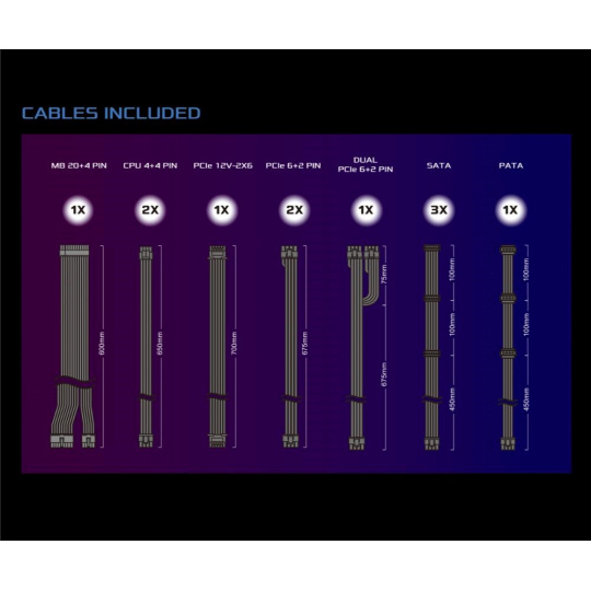 | Dvojitý PCIe 6+2 Pin Konektor | 1x / 2x (675 + 75 mm) |