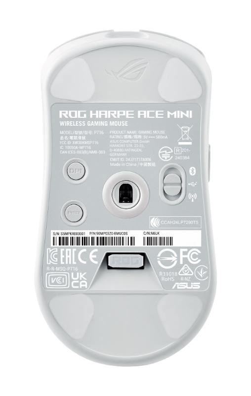 ASUS Herní myš ROG Harpe Ace Mini, Bezdrátová BT, RF 2.4GHz, bílá