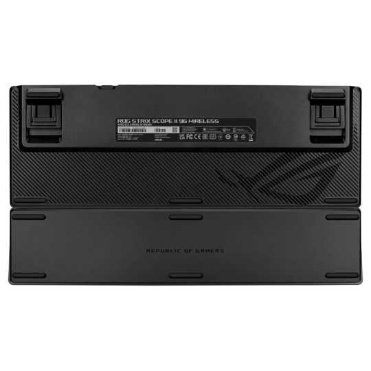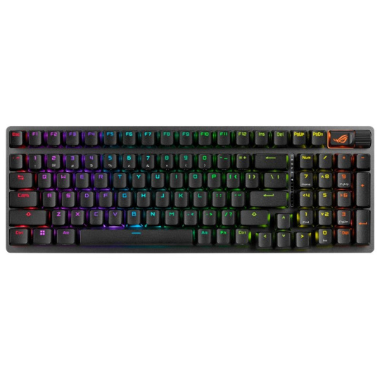 Herná klávesnica ROG Strix Scope II X s mechanickými spínačmi ROG NX V2 s možnosťou výmeny za prevádzky, penovým tlmením zvuku, zdvojenými klávesami PBT alebo ABS s UV povlakom, streamovacími klávesami, multifunkčnými ovládacími prvkami, tromi uhlami sklonu a opierkou zápästia.
