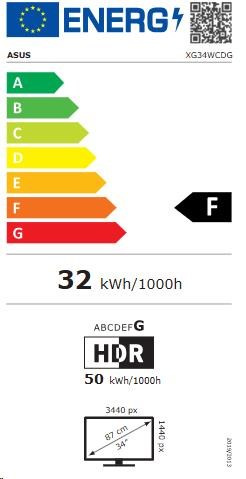 ASUS LCD ROG Strix OLED XG34WCDG, 34" 3440x1440, 250nits, 175Hz, 0,03ms, 178/178, USB, DP, HDMI, Audio, VESA, Black