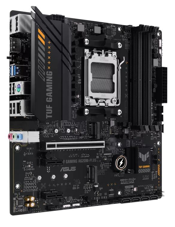 TUF GAMING A620M-PLUS is equipped with outstanding features, including 6-layer PCB design, DDR5 6400+(OC), Massive VRM Heatsink, PCIe 4.0 support, dual M.2 slots, Realtek 2.5Gb Ethernet, USB 3.2 Gen 1 ports, front USB 3.2 Gen 1 Type-C®, BIOS FlashBack™, 2 x DisplayPort, HDMI™, Addressable Gen 2 headers, Aura RGB header, Aura Sync, M.2 Q-Latch, Q-LED Core, ASUS OptiMem II, Fan Xpert 2+, Power Saving, Two-Way AI Noise Cancellation, Armoury Crate, ASUS TUF PROTECTION and SafeSlot Core+, which will bring users maximizing performance, stability and compatibility for the very best DIY PC experiences.