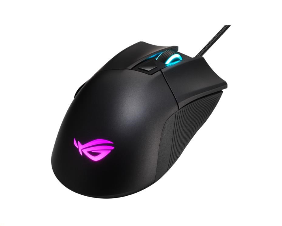 - Klasická ergonómia ROG Gladius s diskrétnymi ľavými a pravými tlačidlami, ľahkou konštrukciou a odolnými protišmykovými bočnými úchytmi s vyleptaným ikonickým totemom ROG