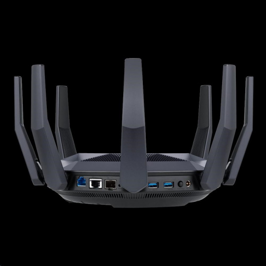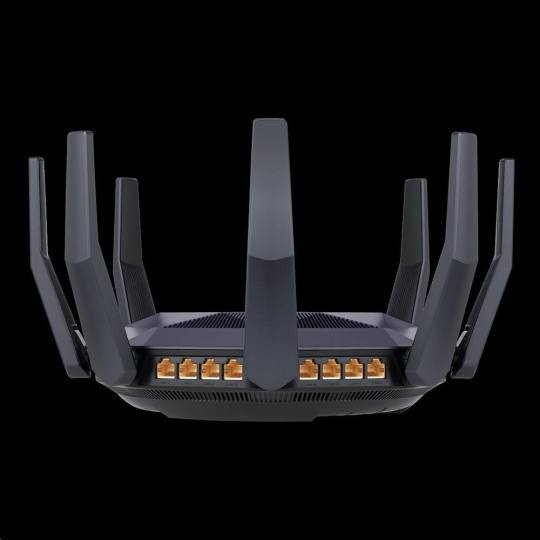 Štandard WiFi 6 novej generácie - 802.11ax WiFi pre lepšiu efektivitu a priepustnosť. .Ultrarýchla rýchlosť WiFi - 12-prúdová rýchlosť WiFi 6000 Mb/s, ktorá si hravo poradí aj s najvyťaženejšou sieťou. .Dva porty 10G - Vychutnajte si až 10-násobne vyššiu rýchlosť prenosu dát pre úlohy náročné na šírku pásma vďaka sieťovým portom 10GBase-T a 10G SFP+. Širšie využitie a väčšie pohodlie - 8 antén + 8 portov LAN na podporu viacerých klientov súčasne. Zabezpečenie na komerčnej úrovni - AiProtection Pro od spoločnosti Trend Micro™ blokuje internetové bezpečnostné hrozby pre všetky vaše pripojené inteligentné zariadenia. Lepší partner so systémom Mesh - Kompatibilný so systémom ASUS AiMesh WiFi pre bezproblémové pokrytie celej domácnosti. 12-stream AX6000 Dual Band WiFi 6 (802.11ax) Smerovač 802.11ac : až 1000 Mb/s 802.11ac (5GHz) : až 4333 Mb/s 802.11ax (2.4GHz): až 1300 Mb/s 802.11ax (5 GHz): až 4804 Mb/s OFDMA + MU-MIMO, 1024 QAM,..
