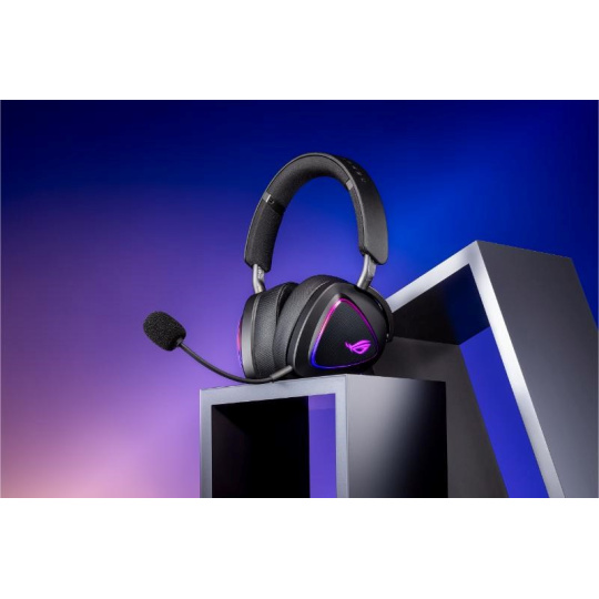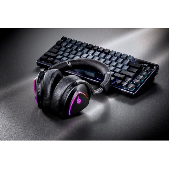 Bezdrôtová herná náhlavná súprava v troch režimoch s ROG SpeedNova, 50mm drivery s titanovou membránou a vyladeným zvukom, 10mm super širokopásmový mikrofón, DualFlow Audio, výdrž batérie až 110 hodín, ľahký dizajn 318 g, plus RGB osvetlenie ASUS Aura Sync