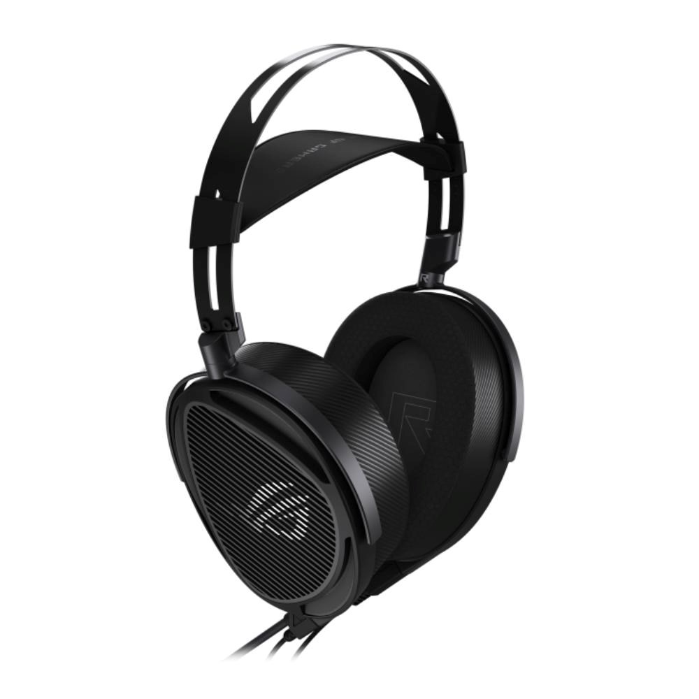 ROG Kithara herní headset s ROG-laděnými 100mm HIFIMAN planárními magnetickými měniči, otevřenou konstrukcí, plno-pásmovým MEMS boom mikrofonem, duálním 3,5mm vstupem, 4,4mm vyváženým, 3,5mm a 6,3mm nevyváženými konektory.