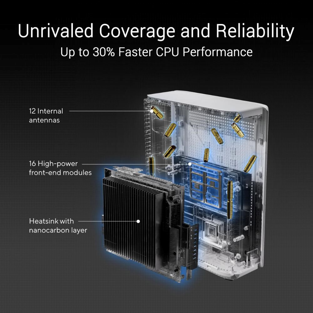 - Sat Interné antény a šestnásť vysoko výkonných predných modulov eliminuje mŕtve zóny WiFi vo všetkých smeroch, zatiaľ čo robustný rozptyl tepla zvyšuje spoľahlivosť WiFi.