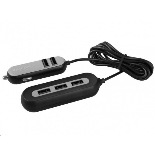 AVACOM CarHUB nabíja 5 zariadení súčasne. Má dve časti, ktoré sú spojené 1,5 m dlhým káblom. Prvú časť s dvoma výstupmi USB možno zapojiť do zásuvky zapaľovača automobilu. Ďalšie tri výstupy USB možno pomocou praktického klipu pripevniť za zadné sedadlo, čo umožňuje nabíjanie pre všetkých cestujúcich vo vozidle. Vysoký výstupný prúd nabíjačky (2,4 A na port a 10,8 A celkovo) a výkon 54 W zaručujú bezproblémové nabíjanie náročných zariadení - smartfónov, tabletov alebo navigácií.