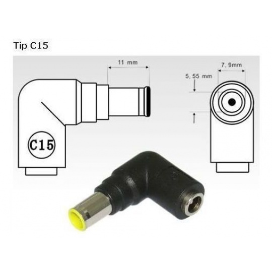 Konektor, ktorý možno použiť na redukciu konektora C.4 univerzálne sieťové adaptéry na konektor C15 (7,9 mm x 5,5 mm pin) vhodné pre notebooky IBM/Lenovo