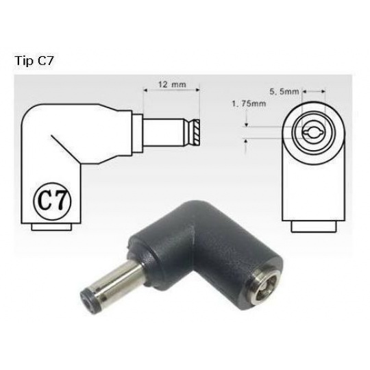 Konektor, ktorý možno použiť na redukciu konektora C.4 univerzálne napájacie adaptéry s konektorom C7 (5,5 mm x 1,7 mm) vhodné pre notebooky Acer