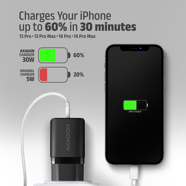 Nabíjačka podporuje 20W PD nabíjanie pre iPhone 12, 13, 14 a 15 a ponúka aj 27W PD nabíjanie pre iPhone 13 Pro, 14 Pro, 15 Pro a ich modely Pro Max. Okrem toho podporuje 25W SFC nabíjanie pre Samsung Galaxy S20 - S24, Séria Note a Z Fold a ponúka aj 30W SFC nabíjanie pre Samsung Galaxy S20 - S24 Ultra, Tab S7+ - S9+, Tab S8 - S9 Ultra. Adaptér je kompatibilný aj s inými štandardmi rýchleho nabíjania telefónov, ako sú Apple iPhone, iPad, Samsung, Huawei, Honor, Xiaomi.
