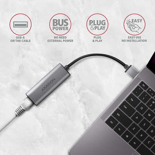 AXAGON ADE-25R, USB-A 3.2 Gen 1-2.5 Gigabitová sieťová karta Ethernet, Realtek 8156, automatická inštalácia, sivá