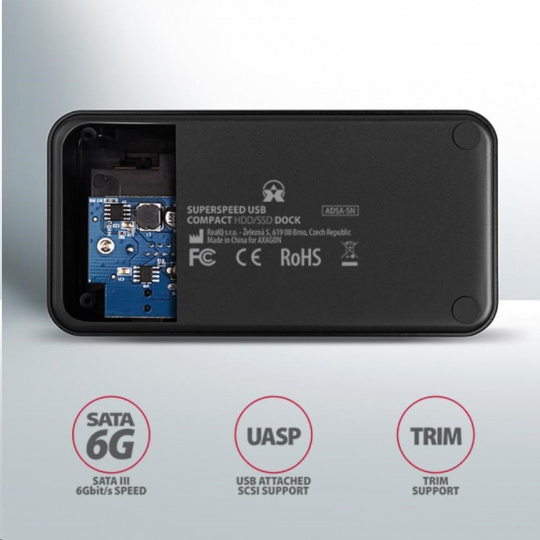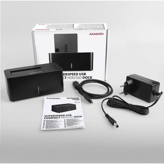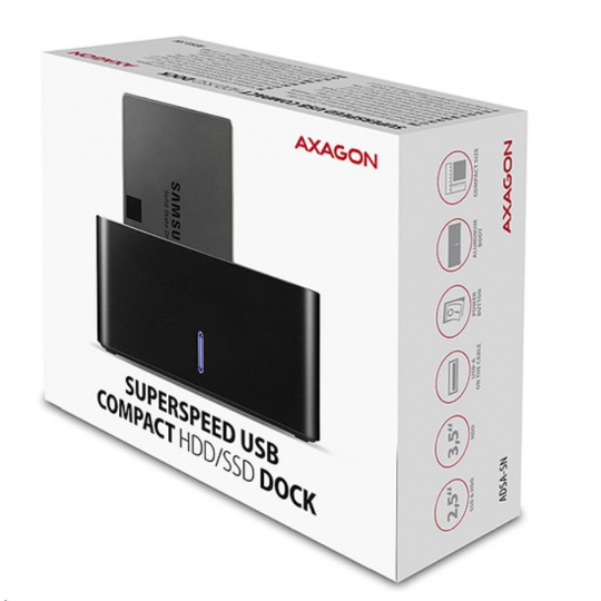 Dokovacia stanica AXAGON ADSA-SN COMPACT HDD/SSD DOCKSuperSpeed USB rýchlo a jednoducho pripojí akýkoľvek disk SATA k počítaču.