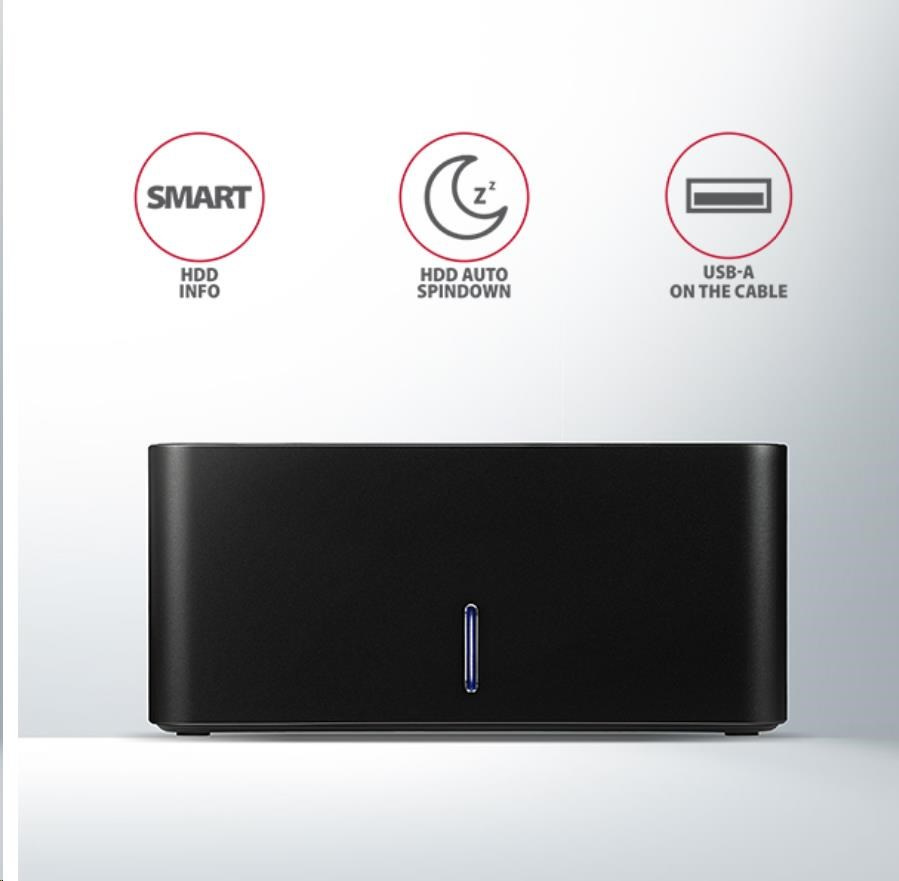 Rozhraní SATA 6G s podporou UASP dovolí užívat si rychlost moderních SSD disků. Podpora funkce TRIM pro omezení pozvolné degradace výkonu SSD v čase. Čtení S.M.A.R.T. informací monitorujících kondici připojených disků. Podpora uspávání připojených disků i stanice.