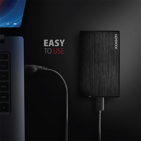 Kompaktný hliníkový externý box AXAGON EE25-XA6 ALINEbox s USB 3.0 a SATA 6G rozhraním určený pre 2.5" SATA pevné disky alebo SSD.