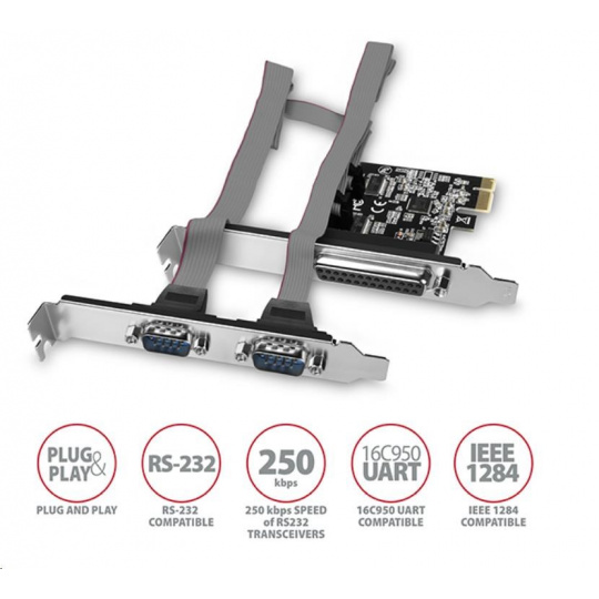 AXAGON PCEA-PSN, PCIe radič - 1x paralelný (LPT) + 2x sériový port (RS232) 250 kbps, vrátane. LP