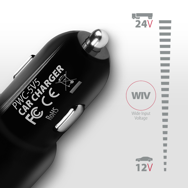 • Wide Input Voltage - funkcia širokého rozsahu vstupného napätia, chráni adaptér proti podpätiu a prepätiu na vstupe a umožní automatické rozpoznanie 12V alebo 24V palubného rozvodu.